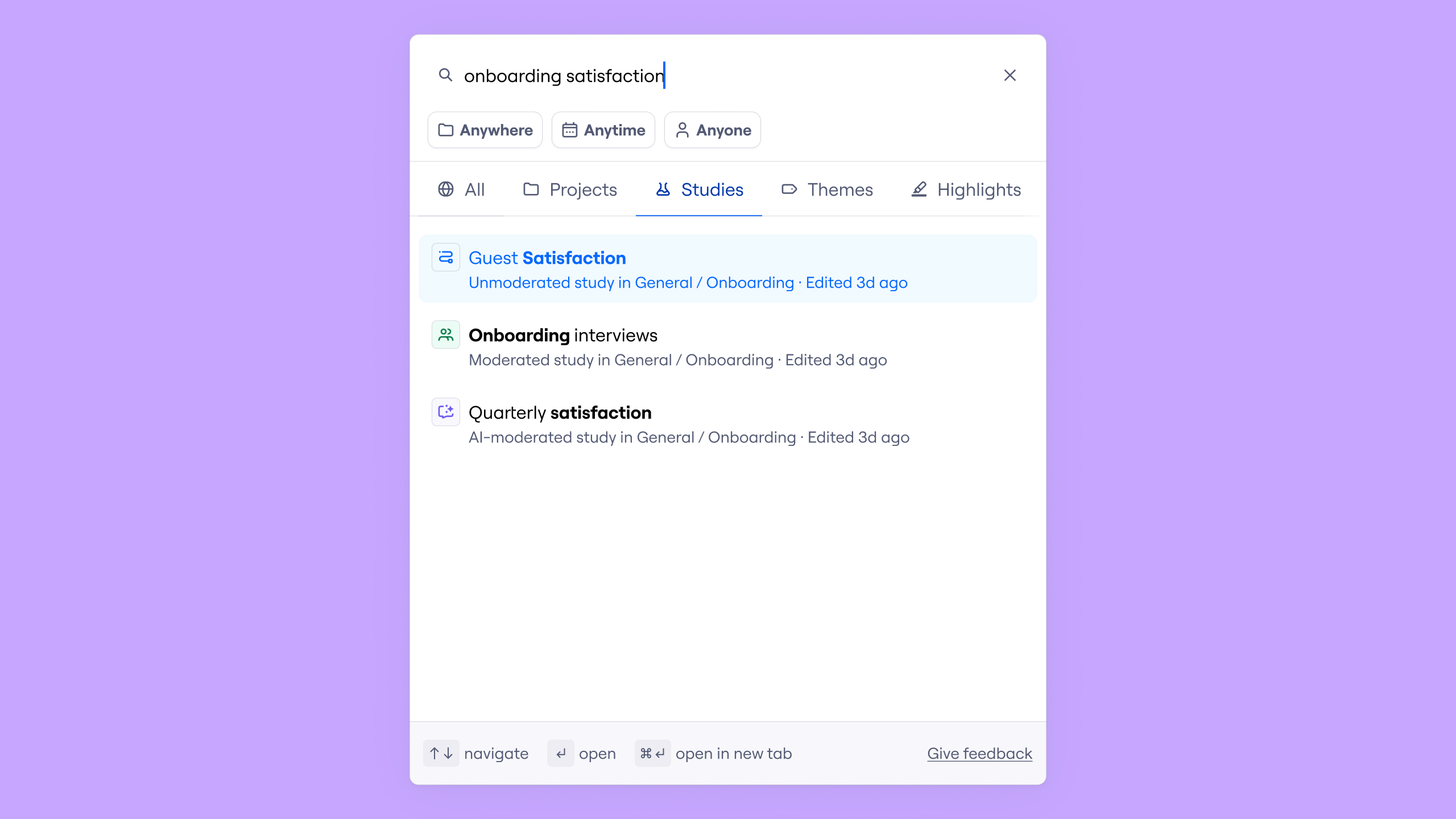 Unless someone already knows which studies exist and where to look, critical insights remain invisible. Teams spend time manually browsing past projects, slowing decisions and leading to repeated work.